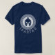 Casco espartano dentro del diseño de patrón redondo de la clave griega camiseta azul marino de los hombres con texto curvo de estilo griego.