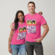 El color es muy bonito al natural, como la foto. El tejido es suave y de buena calidad. Sin defectos en el tintado, ni hilos sueltos o descosidos. Bien la impresión. Los bordes de las letras y el dibujo son nítidos, y el color contrasta muy bien con el de la camiseta.
