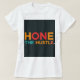 Un ilustracion vibrante de una persona superando obstáculos y logrando el éxito, con el texto "Hone the Hustle" incorporado en el diseño.