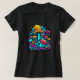 Arte neón colorido con hongos azules y rosas y flores y fondo negro.