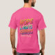 El color es muy bonito al natural, como la foto. El tejido es suave y de buena calidad. Sin defectos en el tintado, ni hilos sueltos o descosidos. Bien la impresión. Los bordes de las letras y el dibujo son nítidos, y el color contrasta muy bien con el de la camiseta.