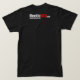 Esta camiseta negra tiene dos lados. Altos tops rojos agitados clásicos en la parte posterior delantera y agitada del rojo Info encendido.