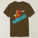 El color es muy bonito al natural, como la foto. El tejido es suave y de buena calidad. Sin defectos en el tintado, ni hilos sueltos o descosidos. Bien la impresión. Los bordes de las letras y el dibujo son nítidos, y el color contrasta muy bien con el de la camiseta.