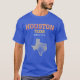 The T-shirt design saying "Houston," "Space City" and "Texas" is colored deep royal with bright red, grey, orange, white and yellow orange ink in it. It is made out of 100% cotton.