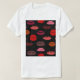 Patrón sin foco con la huella labial de rojo dibujado a mano, rosa, marrón, orang y borgoña sobre fondo negro. Textura virgen con besos. Besos de época - ¡Un patrón encantador para ti! Besos y abrazos: Cute Lip Print Seamless Pattern! textura, fondo, patrón, abstracto, ilustracion, mujer, decoración, moda, amor, chica, belleza, negro, sin costura, mujeres, silueta, maquillaje, rojo, valentina, tela, rosa