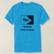 Una camiseta azul con un pez grande intenta comer un buzo con el texto francés Humain Savoureux debajo que se puede traducir como Tasty Human.