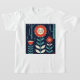 This is an illustration-style digital artwork featuring humanized flowers on a dark background.
