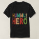 Un divertido y colorido diseño de camisetas con el texto "Hummus Hero" en una letra atrevida y caricaturizada. El diseño es perfecto para los fanáticos del humus y para todo aquel que ame una buena risa.