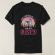 El color es muy bonito al natural, como la foto. El tejido es suave y de buena calidad. Sin defectos en el tintado, ni hilos sueltos o descosidos. Bien la impresión. Los bordes de las letras y el dibujo son nítidos, y el color contrasta muy bien con el de la camiseta.