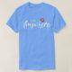 El color es muy bonito al natural, como la foto. El tejido es suave y de buena calidad. Sin defectos en el tintado, ni hilos sueltos o descosidos. Bien la impresión. Los bordes de las letras y el dibujo son nítidos, y el color contrasta muy bien con el de la camiseta.