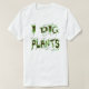 Yo cavo plantas jardinero gracioso que dice en letras verdes y desordenadas, con mucha suciedad alrededor de los bordes. Un divertido lema de jardinería de theGardenPages.com