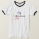 El color es muy bonito al natural, como la foto. El tejido es suave y de buena calidad. Sin defectos en el tintado, ni hilos sueltos o descosidos. Bien la impresión. Los bordes de las letras y el dibujo son nítidos, y el color contrasta muy bien con el de la camiseta.