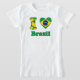 I heart Brazil t-shirt . Tekst: Ik hou van Brazlië. Afbeelding: Hartje in de Braziliaanse vlag.