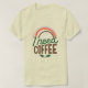 The minimalist design features the phrase "I need coffee" in green and brown letters, arranged in a simple and legible way. At the top of the sign, a rainbow is simulated with soft, delicate tones that add a touch of color and vibrancy to the message. The combination of earthy colors with rainbow symbolism highlights the need expressed with a touch of joy and warmth.