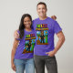 El color es muy bonito al natural, como la foto. El tejido es suave y de buena calidad. Sin defectos en el tintado, ni hilos sueltos o descosidos. Bien la impresión. Los bordes de las letras y el dibujo son nítidos, y el color contrasta muy bien con el de la camiseta.