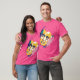 El color es muy bonito al natural, como la foto. El tejido es suave y de buena calidad. Sin defectos en el tintado, ni hilos sueltos o descosidos. Bien la impresión. Los bordes de las letras y el dibujo son nítidos, y el color contrasta muy bien con el de la camiseta.