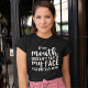 Diseño lindo con frase sarcastica para mujeres con la frase "IF MY MOUTH DOESN'T SAY IT MY FACE DEFINITELY WILL" ideal para regalar en cualquier ocasion a esa persona amante de las frases sarcasticas y divertidas. No lo piense y regale o regalese esta linda playera con frase sarcastica para mujeres ahora.