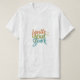 El diseño de la camiseta muestra la frase "enciende tu chispa" en una ráfaga de colores. Las letras parecen audaces y de colores vivos, y algunas letras se superponen o irrumpen hacia el exterior como si fueran encendidas por una chispa. Esto crea una sensación de energía y motivación.