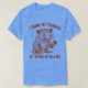 El color es muy bonito al natural, como la foto. El tejido es suave y de buena calidad. Sin defectos en el tintado, ni hilos sueltos o descosidos. Bien la impresión. Los bordes de las letras y el dibujo son nítidos, y el color contrasta muy bien con el de la camiseta.