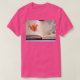 El color es muy bonito al natural, como la foto. El tejido es suave y de buena calidad. Sin defectos en el tintado, ni hilos sueltos o descosidos. Bien la impresión. Los bordes de las letras y el dibujo son nítidos, y el color contrasta muy bien con el de la camiseta.