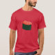 El color es muy bonito al natural, como la foto. El tejido es suave y de buena calidad. Sin defectos en el tintado, ni hilos sueltos o descosidos. Bien la impresión. Los bordes de las letras y el dibujo son nítidos, y el color contrasta muy bien con el de la camiseta.