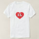 Esta camiseta tiene un vibrante corazón rojo que contiene las letras negrita, blanca y alta del funda IL, la abreviatura oficial de Illinois, el estado de las praderas.