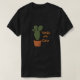 Cactus Ilustracion Camiseta. Lápiz pintado a mano y efecto de tinta efecto picante cactus de pera en una olla con el texto "Manejar con cuidado".