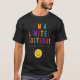 El color es muy bonito al natural, como la foto. El tejido es suave y de buena calidad. Sin defectos en el tintado, ni hilos sueltos o descosidos. Bien la impresión. Los bordes de las letras y el dibujo son nítidos, y el color contrasta muy bien con el de la camiseta.