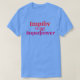 El color es muy bonito al natural, como la foto. El tejido es suave y de buena calidad. Sin defectos en el tintado, ni hilos sueltos o descosidos. Bien la impresión. Los bordes de las letras y el dibujo son nítidos, y el color contrasta muy bien con el de la camiseta.