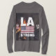 Este poderoso diseño representa el tema de "LA Strong", creado para honrar y apoyar la resiliencia de Los Ángeles y las comunidades circundantes afectadas por incendios devastadores. El audaz texto "LA" está afligido por simbolizar la fuerza a través de la adversidad, e incorpora la bandera estadounidense dentro del diseño para resaltar la unidad y el patriotismo. Las llamas en el fondo significan las dificultades que enfrentaron durante los incendios, mientras que la palabra "Fuerte" en el fondo refuerza el mensaje de esperanza y resiliencia. El lado izquierdo presenta el logotipo de la ATI y un emblema del bombero, reconociendo los heroicos esfuerzos de los primeros en responder. A la derecha, el acrónimo "LAFD" rinde homenaje al Departamento de Bomberos de Los Ángeles, enfatizando su papel crítico en la protección y reconstrucción de la comunidad. Este diseño encapsula el coraje, la unidad y la fuerza inquebrantable frente a los desafíos.
