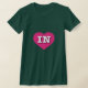 Esta camiseta tiene un vibrante corazón rosado caliente que contiene las letras negrita, blanca y alta del funda IN, la abreviatura oficial de Indiana, el estado más honesto.