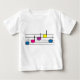 Trae una sonrisa a la cara de tu pequeña con esta camiseta infantil que tiene notas musicales en rosa, azul, púrpura y amarillo en un equipo de música