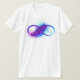 Símbolo infinito con una hermosa pluma pintada de color violeta y azul brillante sobre fondo blanco.