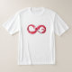 Símbolo infinito de flujo continuo de vino tinto vertiendo en vidrio de vidrio sobre fondo blanco.