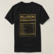 Camiseta Información De Nutrición De Allison Cantidad Por S