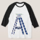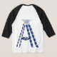 Letra inicial A hecha con imágenes de guijarros de zafiros en corte rectangular, corte de peras y corte marquesa, dentro del corte trapezoide central y adornos cortados de fantasía en el gran zafiro marquesa, acentuado con una flor blanca en la parte superior de la letra A. Sapphire es la piedra de nacimiento de septiembre. El azul es el color del Throat Chakra.