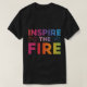 La camiseta muestra el texto "Inspire the Fire" en una audaz y multicolor fuente de graffiti con goteo y salpicaduras, añadiendo un ambiente enérgico y artístico.