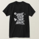 Esta imagen muestra una camiseta negra con un diseño gráfico en negrita y blanco que dice "HAGAN SU PROPIA MAGIA". El texto está distribuido en un diseño dinámico y llamativo, con formas geométricas como un círculo, un triángulo y pequeños cuadrados, lo que aporta un toque moderno y de diseño. Esta camiseta es perfecta para cualquiera que desee añadir un poco de inspiración y positividad a su armario. Ideal para el desgaste informal, este té se puede emparejar con jeans, pantalones cortos o bajo una chaqueta para dar un toque de moda. Disponible para imprimir a petición, este diseño fomenta el autoempoderamiento y la creatividad, convirtiéndolo en un gran regalo para amigos, familiares o uno mismo.