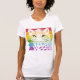 El color es muy bonito al natural, como la foto. El tejido es suave y de buena calidad. Sin defectos en el tintado, ni hilos sueltos o descosidos. Bien la impresión. Los bordes de las letras y el dibujo son nítidos, y el color contrasta muy bien con el de la camiseta.