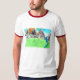 El color es muy bonito al natural, como la foto. El tejido es suave y de buena calidad. Sin defectos en el tintado, ni hilos sueltos o descosidos. Bien la impresión. Los bordes de las letras y el dibujo son nítidos, y el color contrasta muy bien con el de la camiseta.