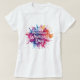 Decorative International Women's Day 2026 women's t-shirt with colourful paint splash background in pink, blue, lilac and yellow. International Women's Day is a global day celebrating women's achievements politically, socially and economically, supporting advancement of women and to educate and to raise awareness of women's equality around the world.