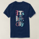 El color es muy bonito al natural, como la foto. El tejido es suave y de buena calidad. Sin defectos en el tintado, ni hilos sueltos o descosidos. Bien la impresión. Los bordes de las letras y el dibujo son nítidos, y el color contrasta muy bien con el de la camiseta.