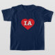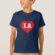 Esta camiseta tiene un vibrante corazón rojo que contiene las letras atrevidas, blancas y fundas superiores IA, la abreviatura oficial del estado de Iowa, el estado ocular halcón.