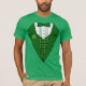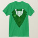 Camiseta verde del leprechaun con el fondo verde, el chaleco del modelo del trébol, la capa verde del cuello y un pequeño perno de la solapa del trébol con un bowtie verde. Falso desgaste formal divertido para el individuo o el hombre del día del St Patrick.