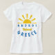 Isla de Andros, Grecia - Camiseta blanca de diseño Sunshine para mujer. Este diseño es para ti si deseas disfrutarlo mientras estás en Andros o como recuerdo de tus hermosas vacaciones en Grecia.