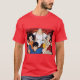 El color es muy bonito al natural, como la foto. El tejido es suave y de buena calidad. Sin defectos en el tintado, ni hilos sueltos o descosidos. Bien la impresión. Los bordes de las letras y el dibujo son nítidos, y el color contrasta muy bien con el de la camiseta.