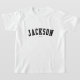 ¡Compruebe hacia fuera esta camiseta de Jackson! ¿Es usted de Jackson, Mississippi? ¿Usted tiene un amigo o un miembro de la familia que amen Jackson, Mississippi? ¡Si es así esta camiseta de la "bandera" es exactamente el regalo que usted está buscando! Las características del diseño "Jackson" en letras negras arqueadas en la fuente clásica de la universidad.