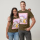 El color es muy bonito al natural, como la foto. El tejido es suave y de buena calidad. Sin defectos en el tintado, ni hilos sueltos o descosidos. Bien la impresión. Los bordes de las letras y el dibujo son nítidos, y el color contrasta muy bien con el de la camiseta.