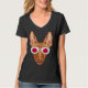 Camiseta con cuello en V de mujer, Negro, XL de adulto