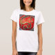 Camiseta japonesa del dragón del oro de Hokusai. Ukiyo-e produjo durante el período de Edo. Las criaturas mitológicas eran un tema frecuente del arte de Hokusai, este dragón del oro son uno de sus trabajos mitológicos más expresivos. El dragón se sienta en un fondo rojo rodeado con las ondas azules salvajes. Un gran regalo para las fans de Katsushika Hokusai, mitología japonesa, dragones japoneses, y arte japonés.